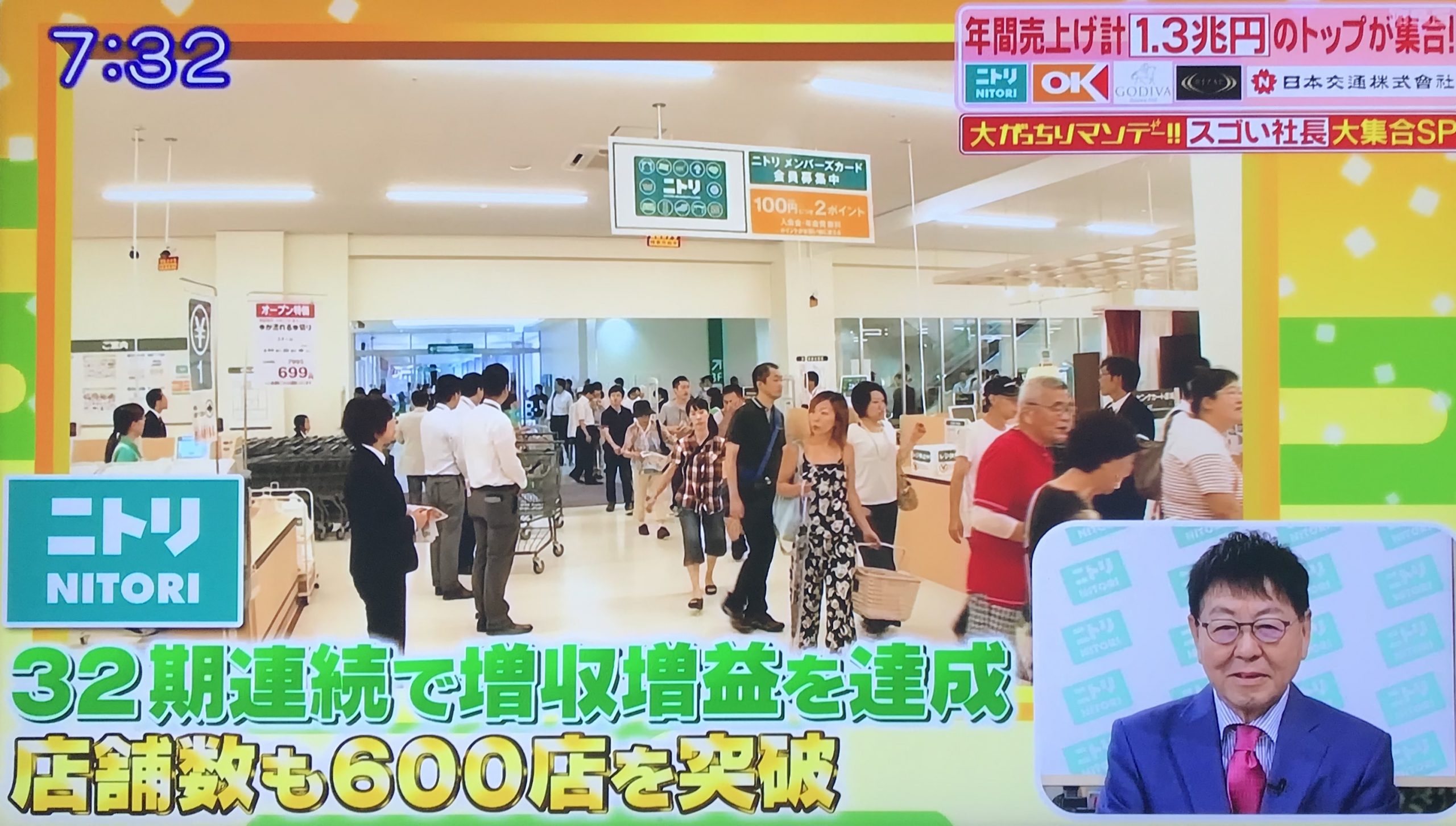 ニトリは32期連続で増収増益を達成し、店舗数も600店舗を突破する好調ぶりを見せている。