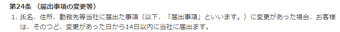 例えば、以下の画像は「プロミス会員規約」の「第24条 (届出事項の変更等)」です。