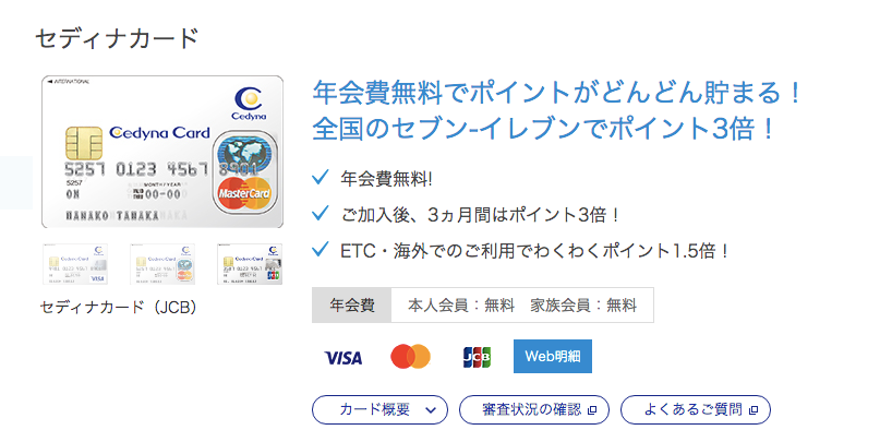 セディナカードはセディナカードJiyu!da!と同じく年会費が無料です。このカードだけのメリットとしてカード加入後3ヶ月間ポイント還元率が3倍になります。