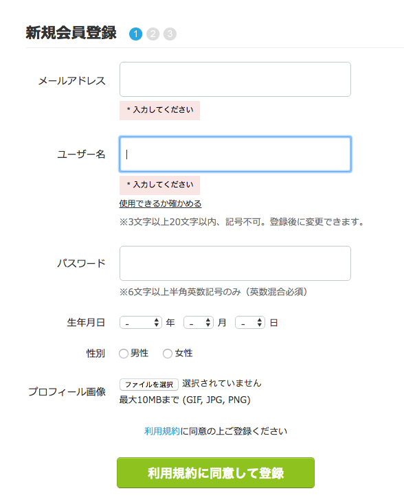 初めての出品の時は以下のような画面が出るので、必要事項を入力します。