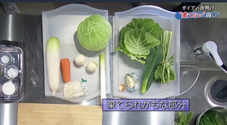 実際に堀江さんの切った番組の案内人の松下さんが生野菜のよく捨ててしまっている部分を写真で見てみても量が多い。