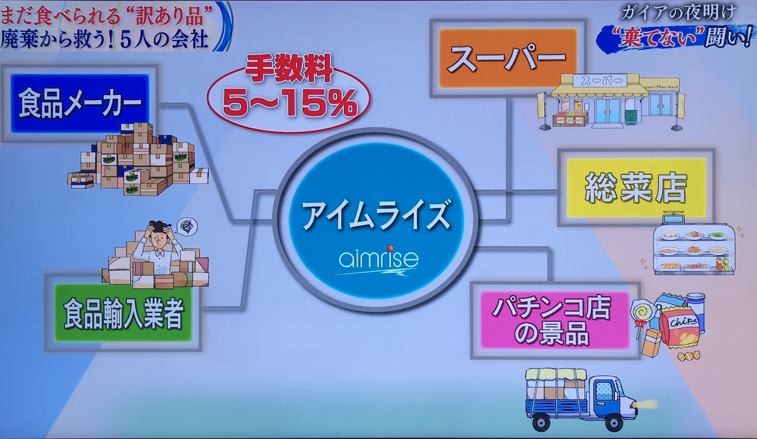 アイムライズは5年前から「訳あり品」を食品メーカーや食品輸入業者から買い取り、スーパーなどに卸すようになった会社。