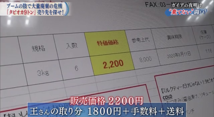 タピオカの仕入れ値はワンさんの知り合いと合わせて約700万円。