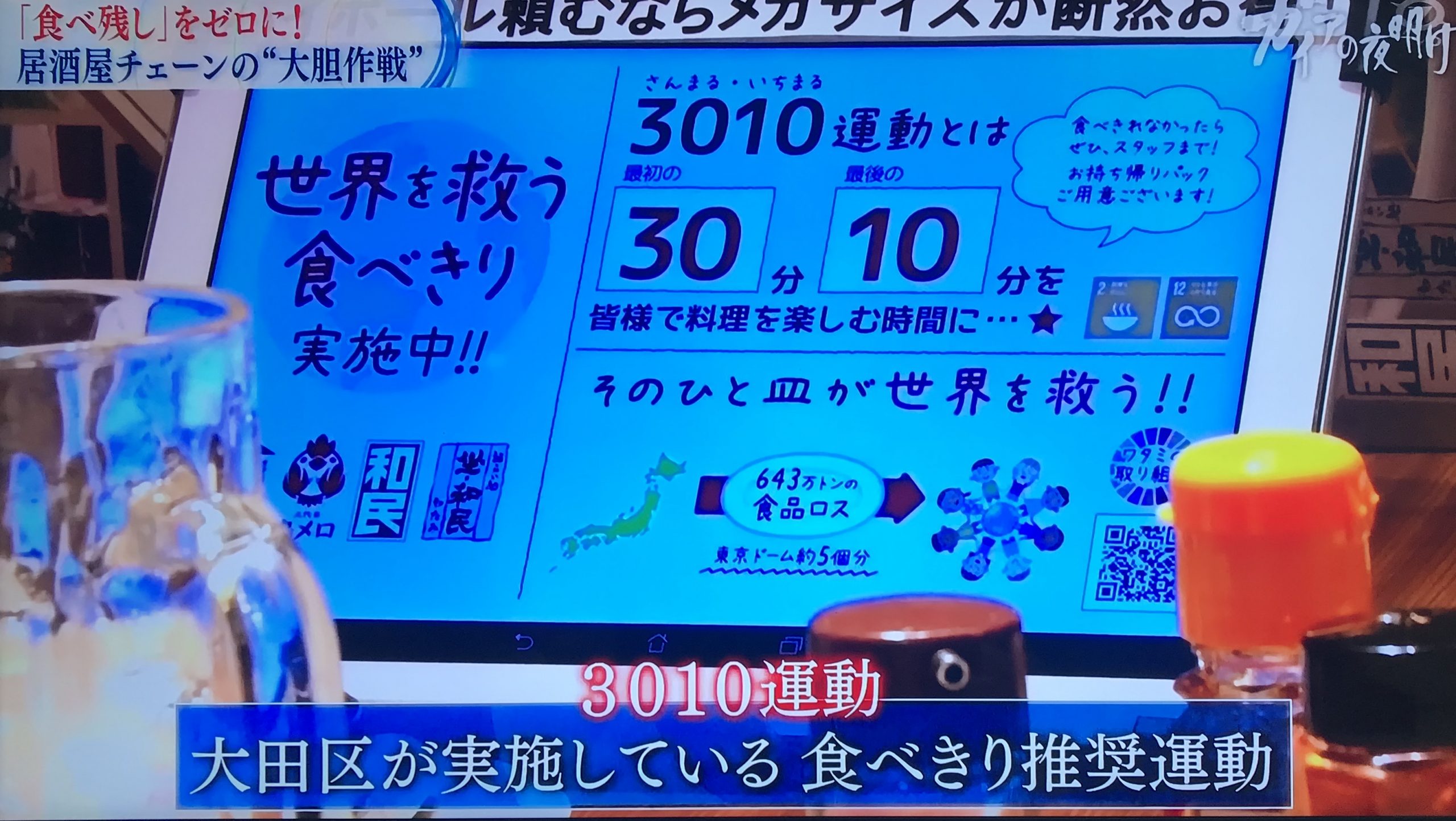 この問題に対して、東京都・大田区にある居酒屋チェーン「和民 大鳥居店」 は、大田区が飲食店にある運動を呼びかけた。