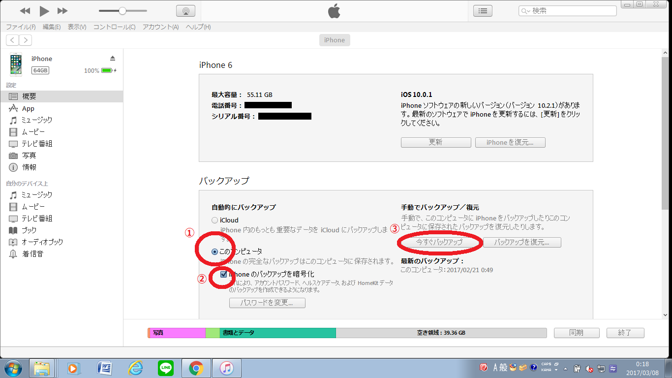 iTunesでバックアップをとる前に簡単な作業を行う必要があります。