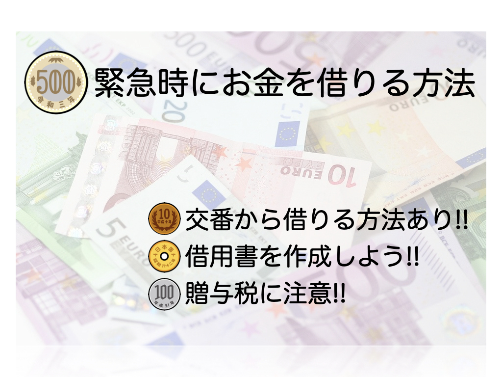 また、緊急にお金を借りたい場合は、交番で警察官からお金を借りることもできます。