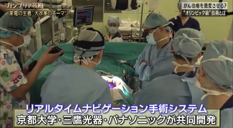 さらにプロジェクションマッピングで対象物を追従し、肝臓が動いても投影できる「リアルタイムナビゲーション手術システム」を京都大学と三鷹光器・パナソニックが共同開発した。