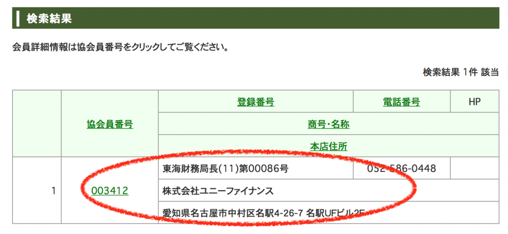 また、登録地域、会員番号も表示されましたのでこれだけで闇金でない事が分かります。
