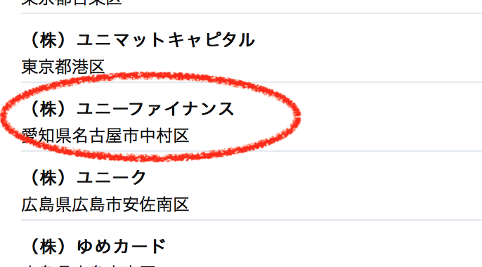 問題なく検索結果にユニーファイナンスが表示されましたね。