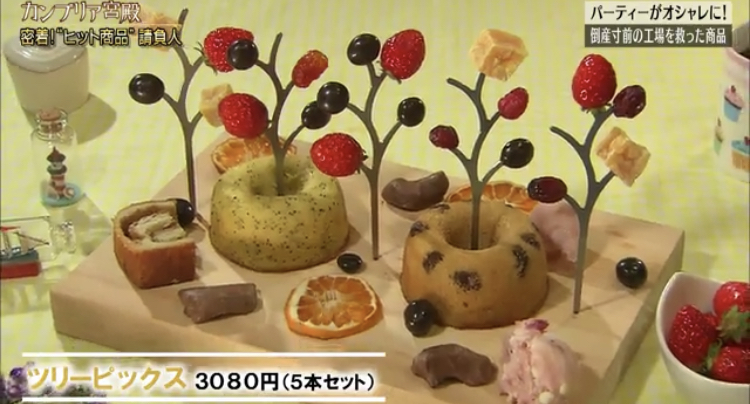 ケータリングやパーティー、結婚式などで写真映えする1本600円のお洒落なフードピック「TREE PICKS」を共同開発し、会社の経営を復活させた。